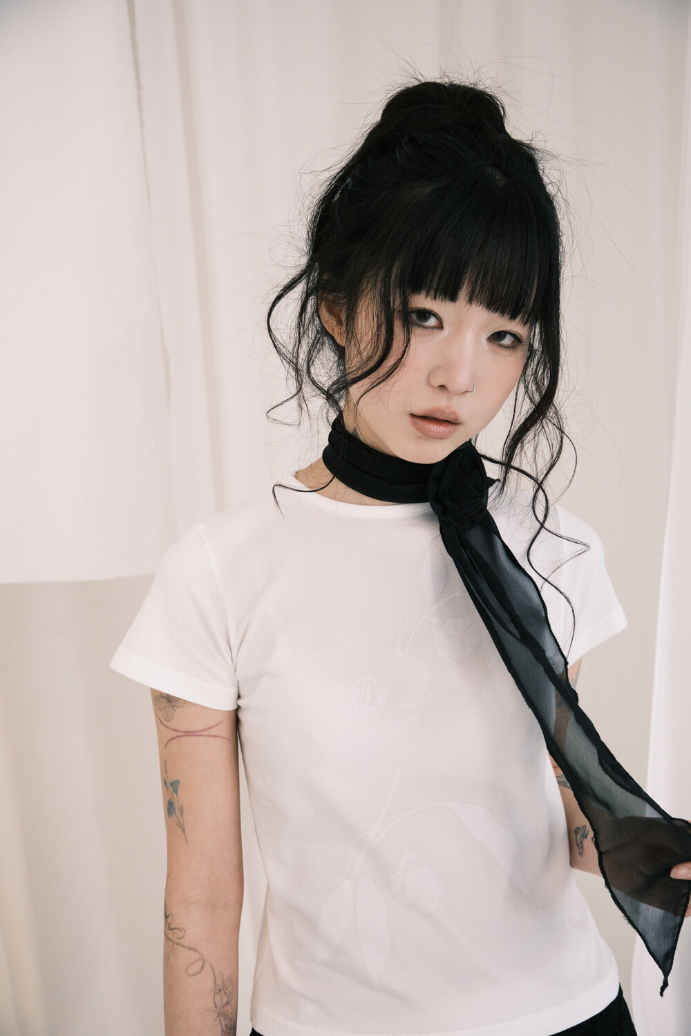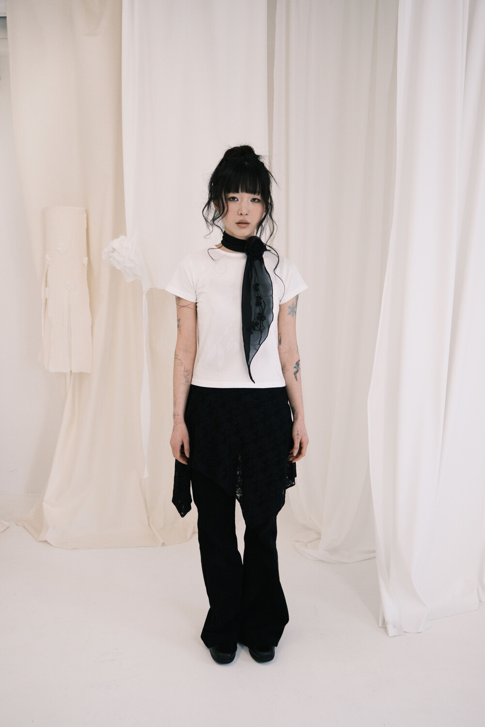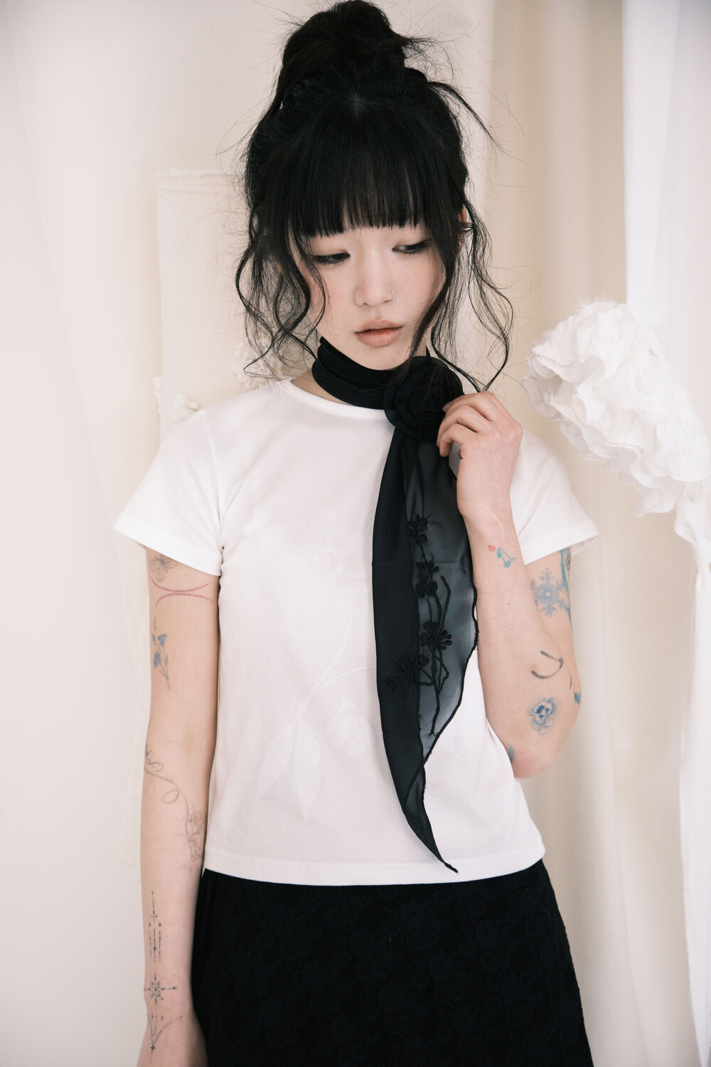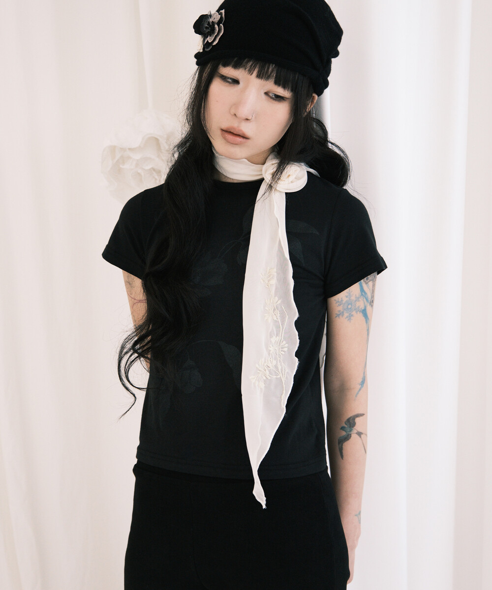 Cherry Blossom Embroidered Chiffon Scarf (2 Colors)
