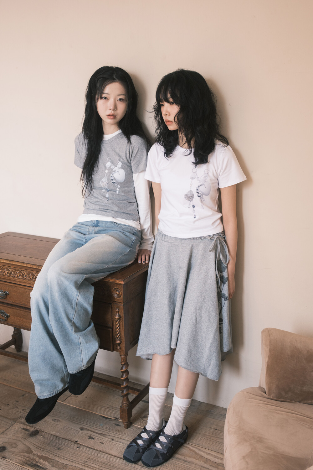 ∙세탁 시에는 프린팅 손상 방지를 위해서 세제는 반드시 중성 세제를 사용해야 하며 의류 건조기는 사용하지 않는 것이 좋습니다. 산성이 강한 세제로 세탁할 시에 프린팅에 치명적인 손상이 발생할 수 있습니다.